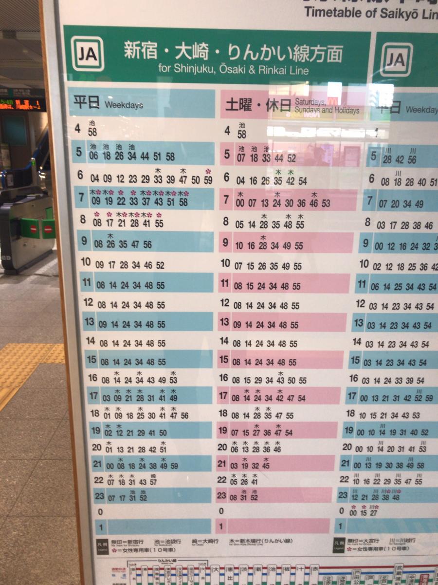 与野本町 JR埼京線/りんかい線/JR川越線 新宿/大崎/新木場方面の時刻表です。普通、快速、平日、土曜、日曜/祝日の時刻.